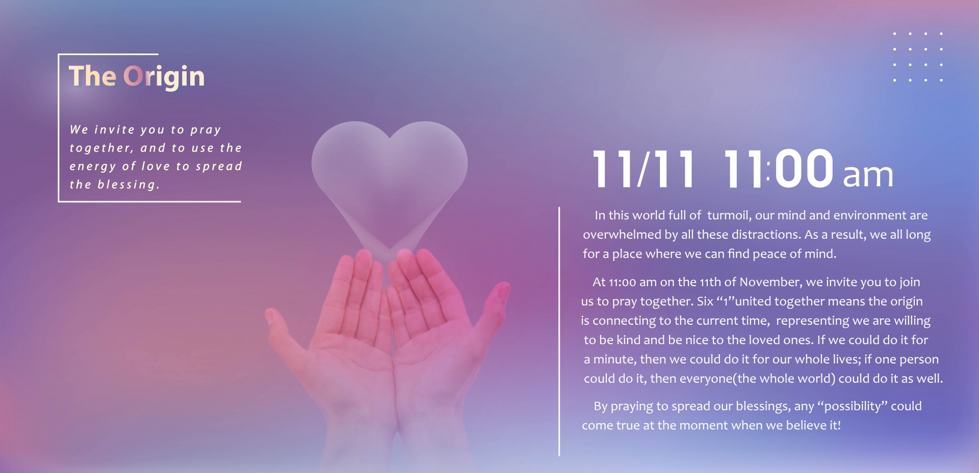We invite you to pray together, and to use the energy of love